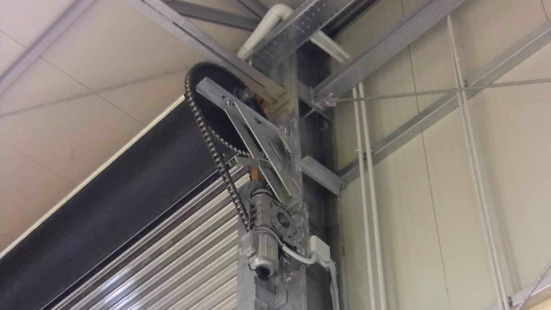 Protivětrný systém složený z vertikálních posuvných vodítek s protivětrným tvarem a hákovou instalací na lamelách roletové clony.