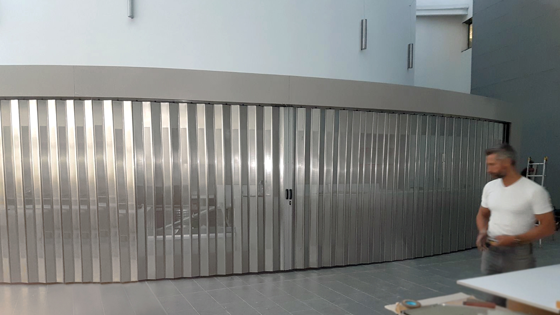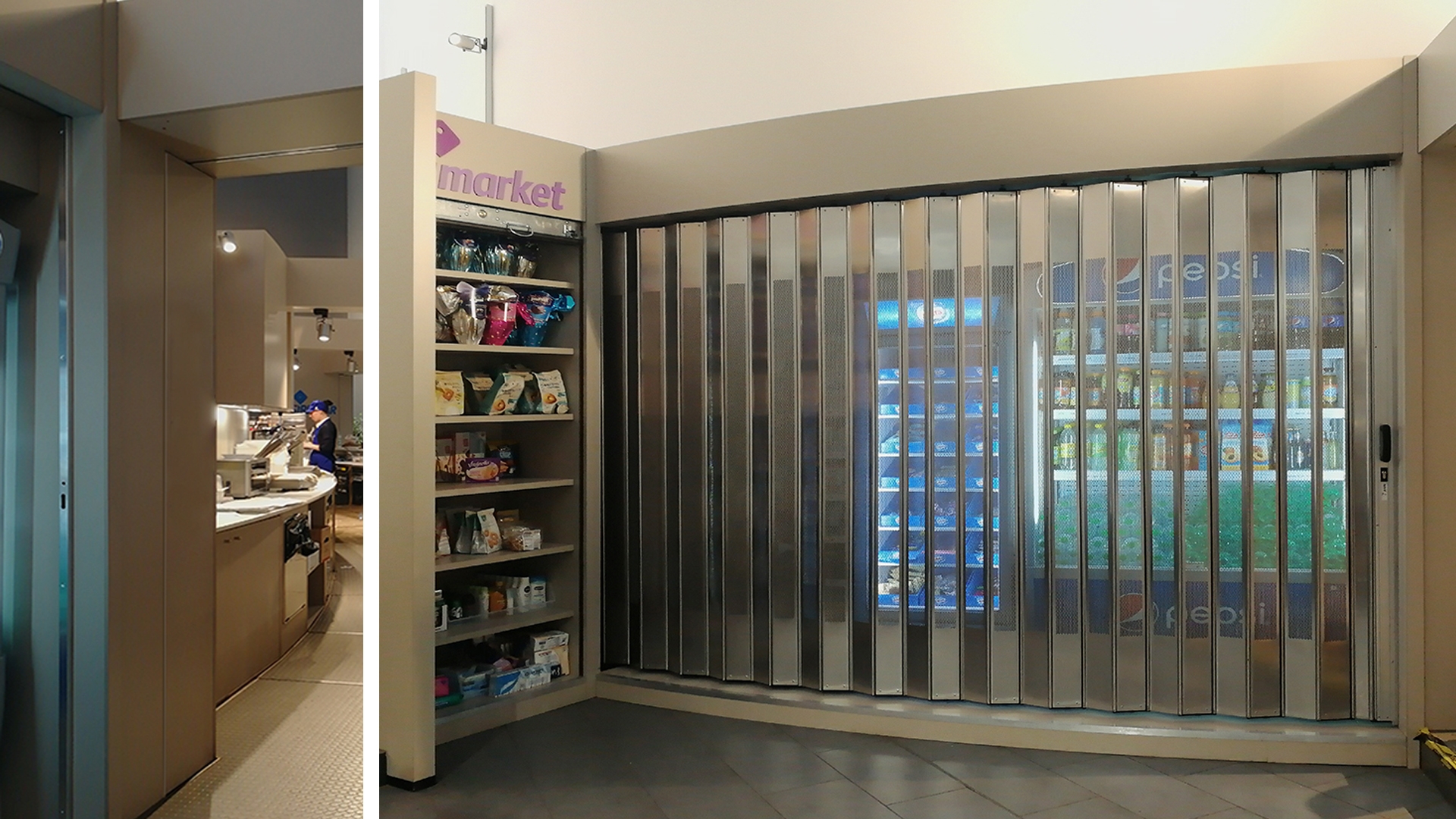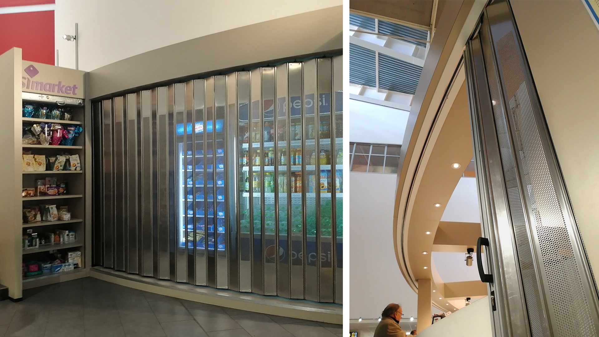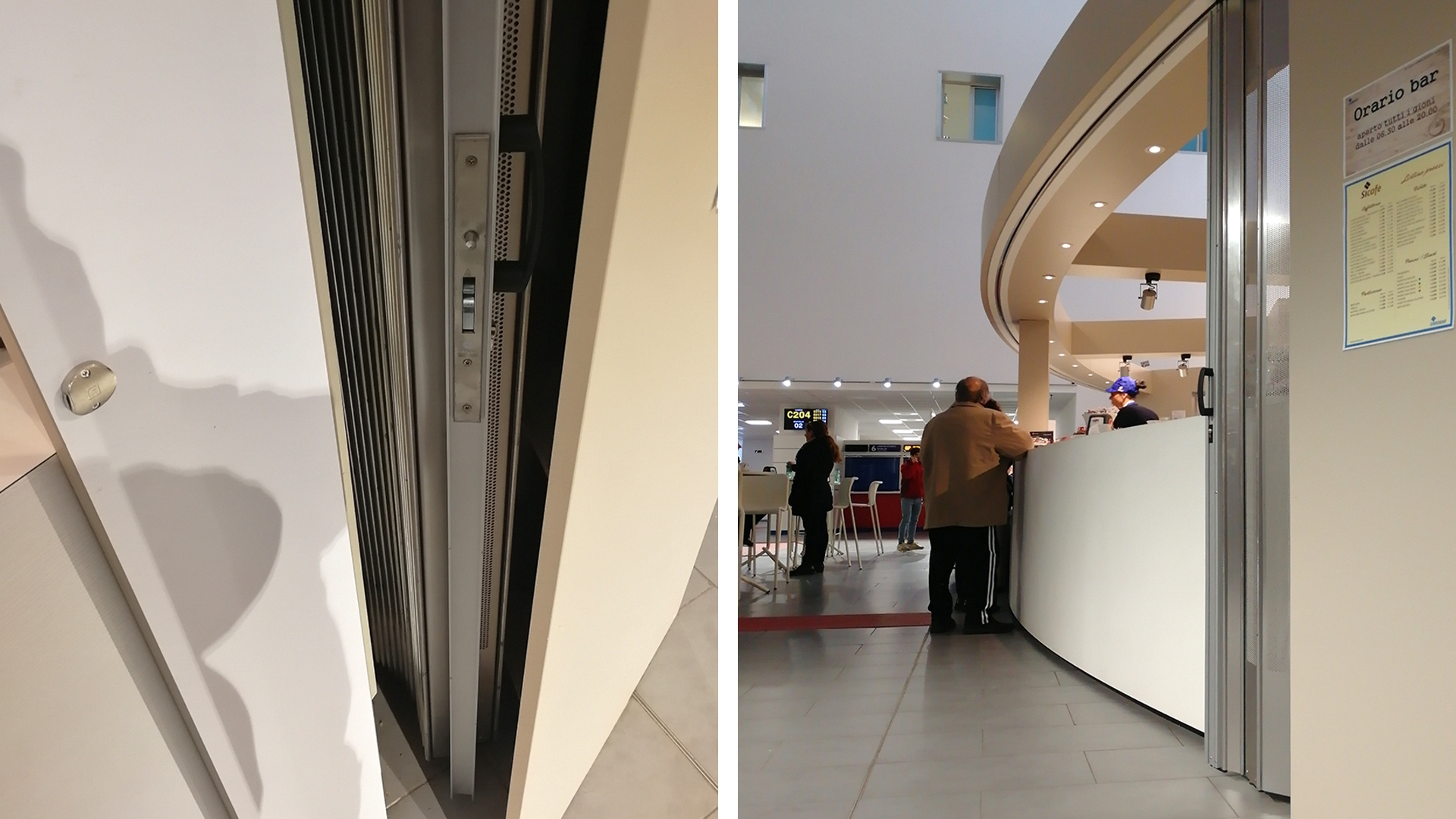 Uzávěr s horizontálním posuvem v křivce FoldingPACK® pro kavárnu uvnitř nemocnice Viterbo.