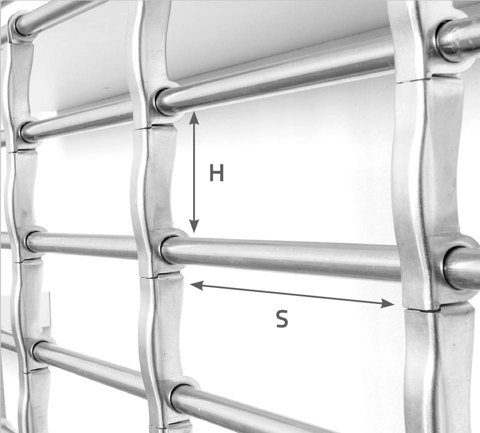 S = vzdálenost mezi tyčemi, od 200 do 400 mm