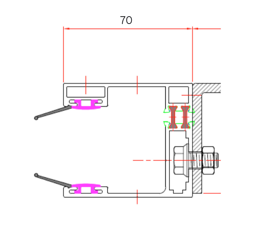 - Polyamidové tyče jsou vloženy do profilu a vodítek.