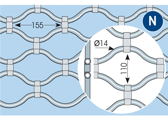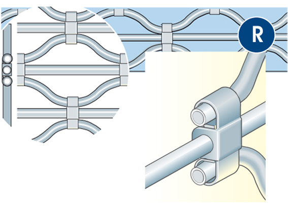 Rolovací mříž z vlnitých trubek a patentovaných spojovacích uzlů.