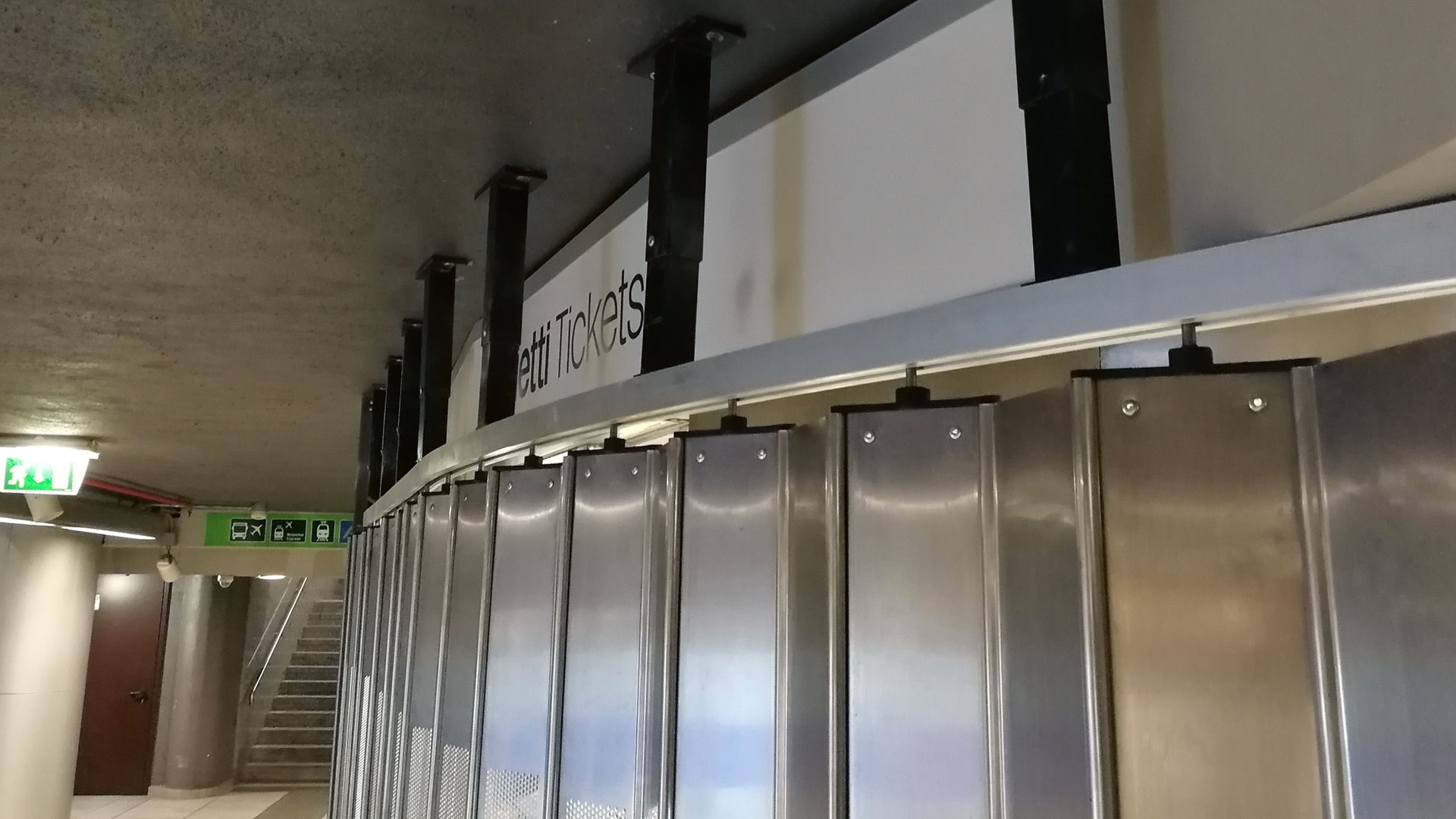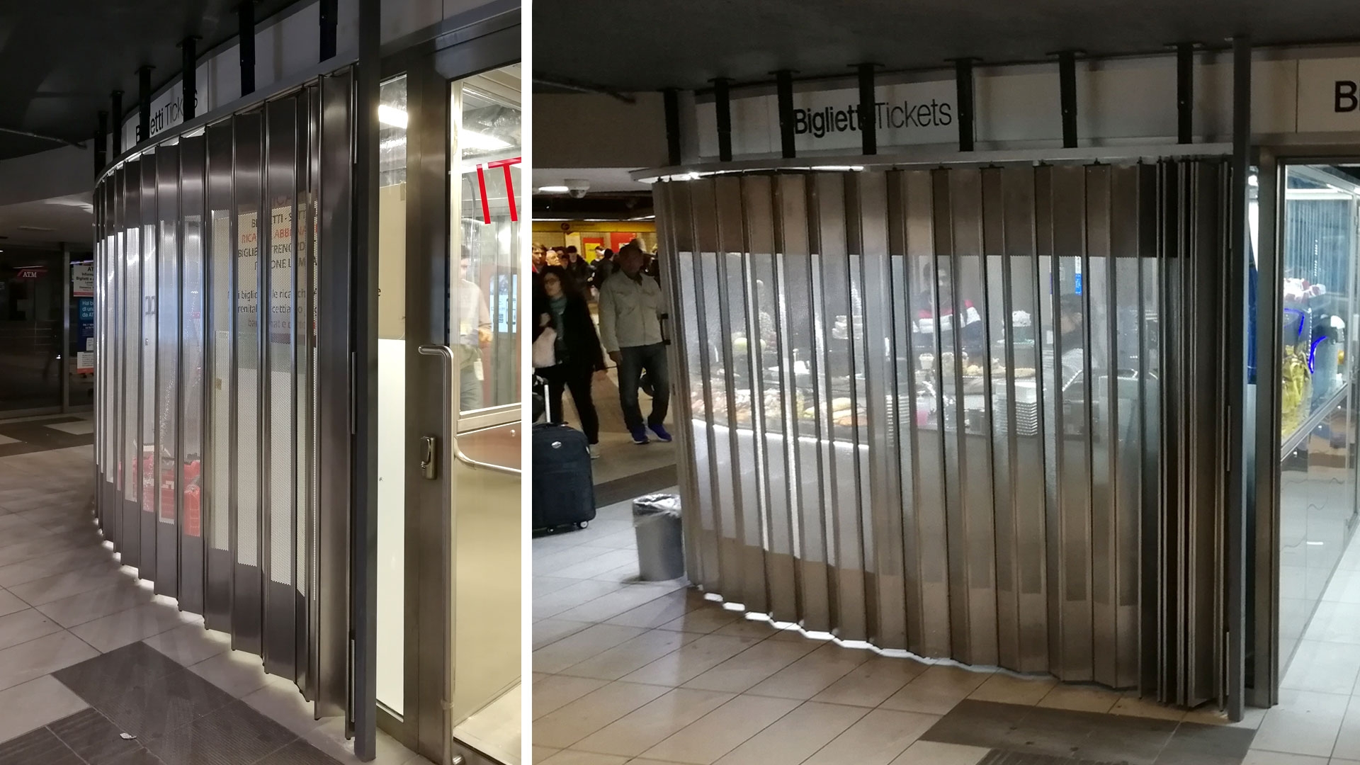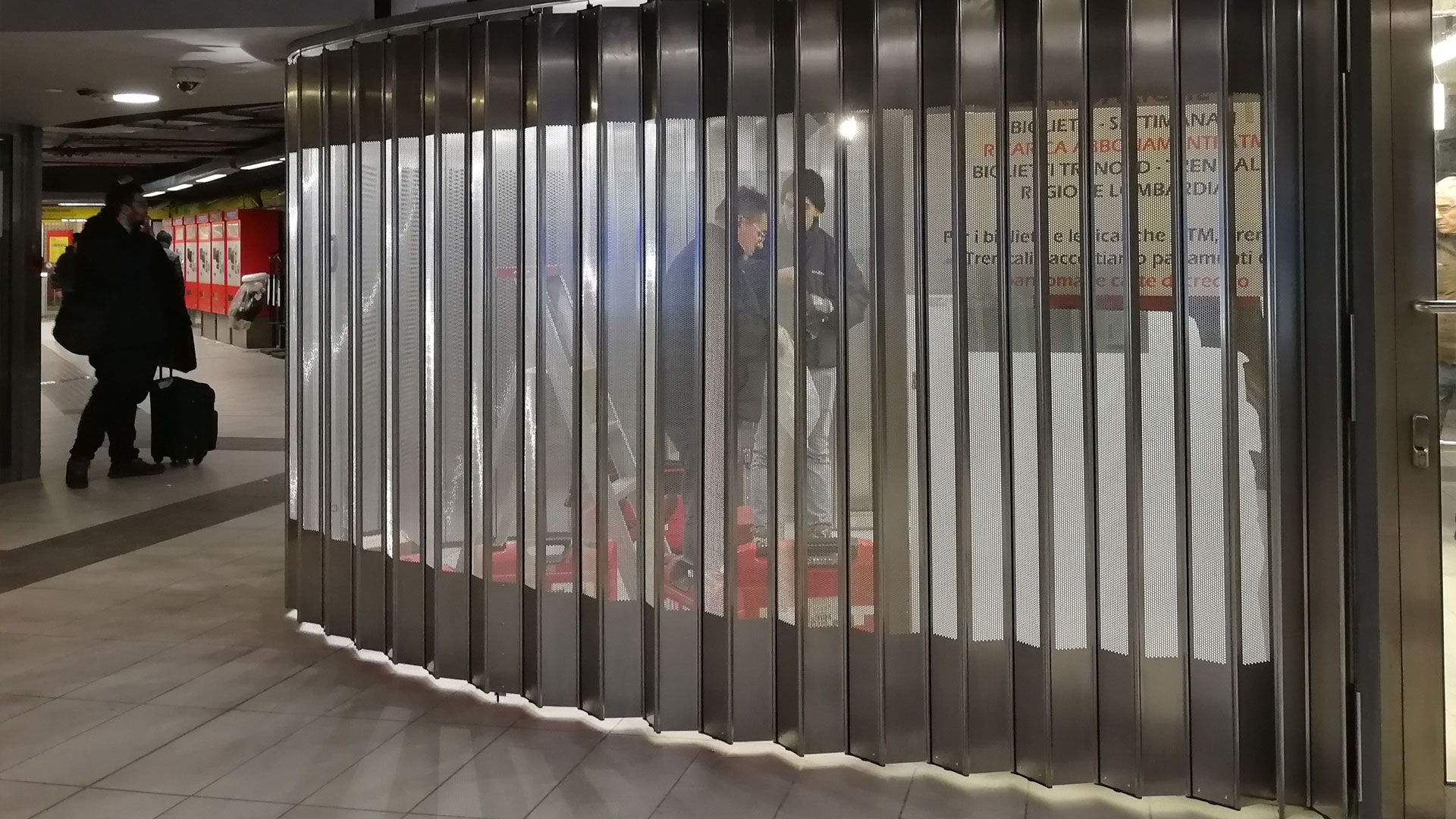 FoldingPACK® horizontální posuv s křivkou, která zcela obepíná kavárnu uvnitř stanice metra Milano Centrale.