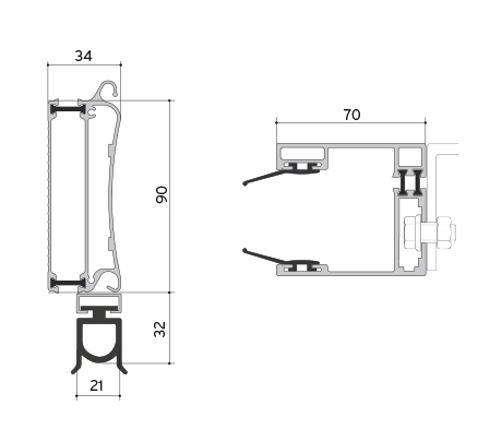 Lamela T.T. 90 je získána spojením č. 2 extrudovaných hliníkových profilů.