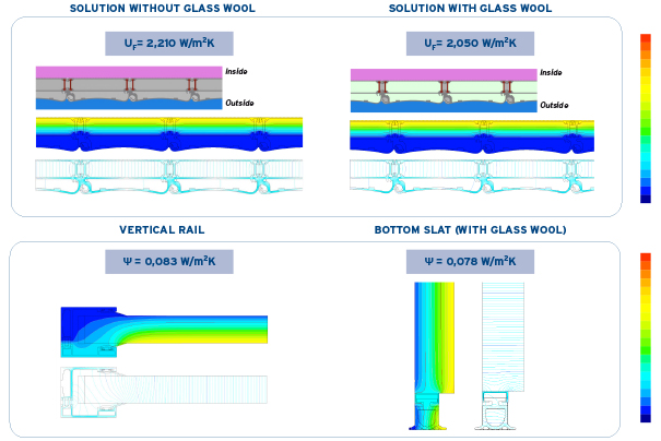 Spojení je provedeno pomocí speciálního mechanického procesu, který zahrnuje vložení n° 2 polyamidových tyčí k získání tepelného mostu mezi n° 2 izolačními prostory.