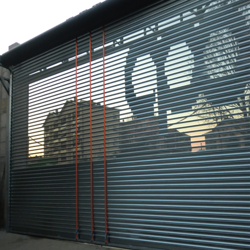 Rolovací stínítko pro velké vstupy. Certifikováno do šířky 20 metrů.