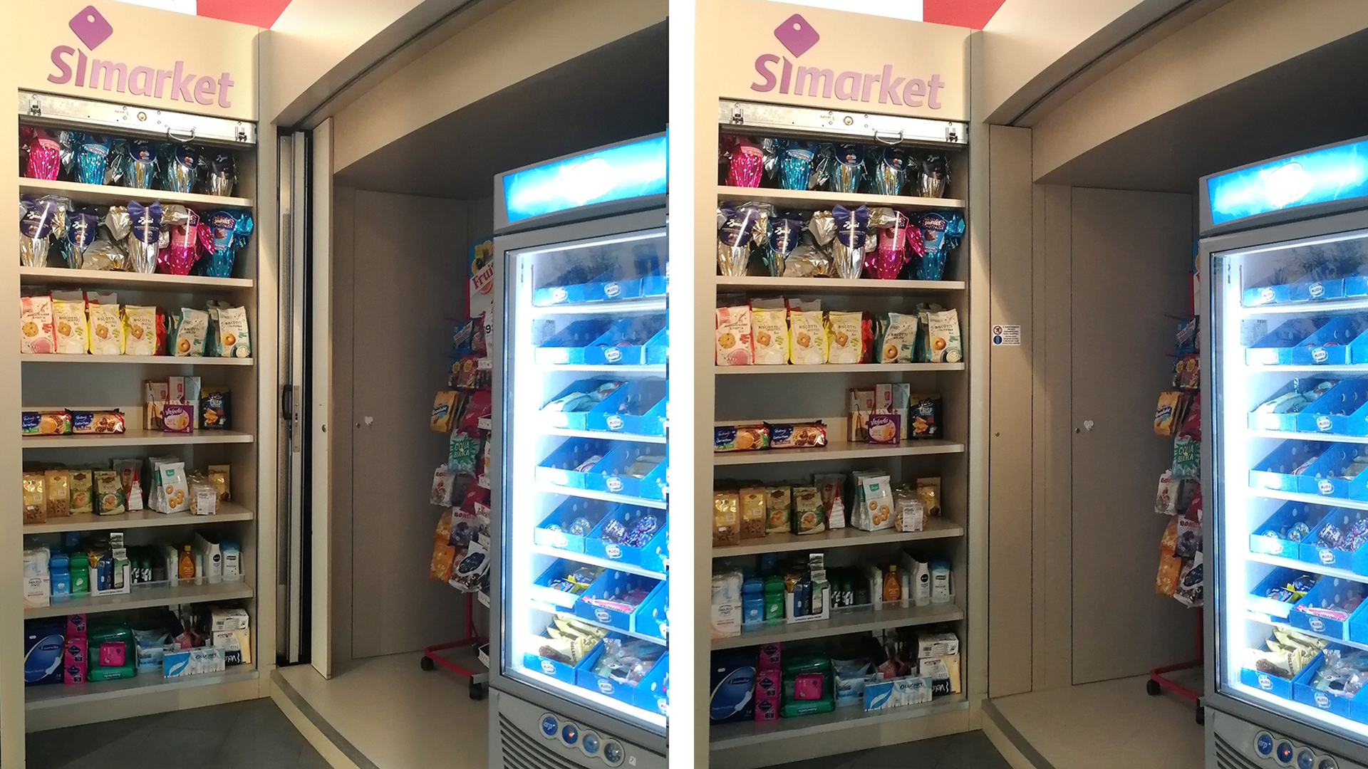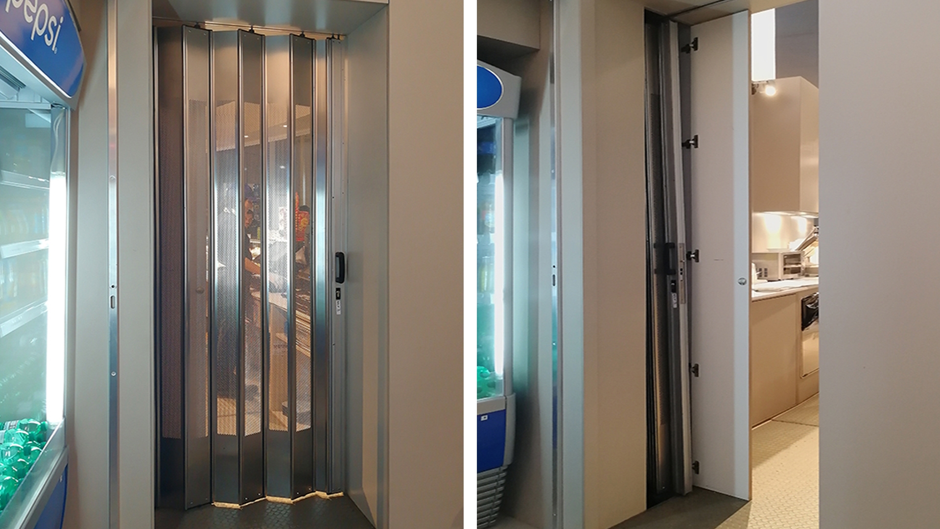 Closure with horizontal sliding in curve FoldingPACK® for a Cafè inside Viterbo hospital.