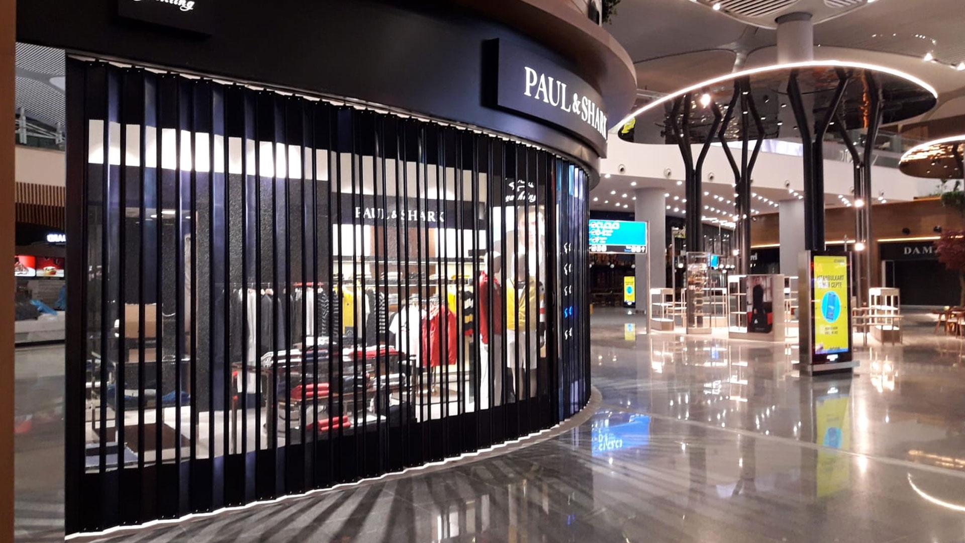 FoldingPACK® horizontal sliding with curve for a shop inside the new Instanbul airport.