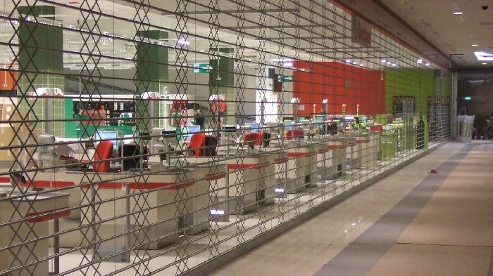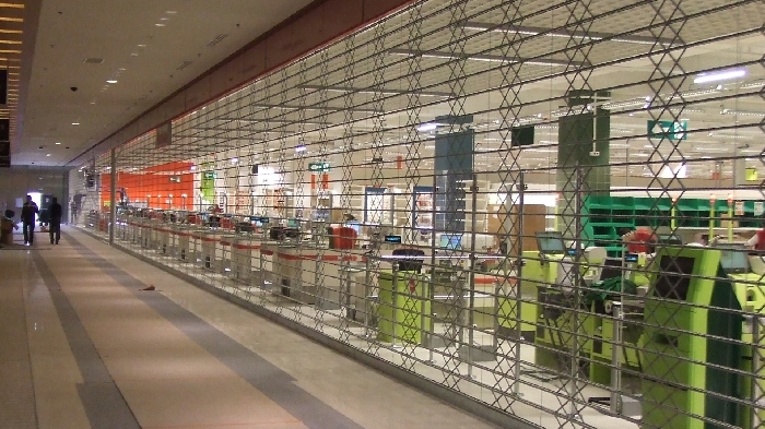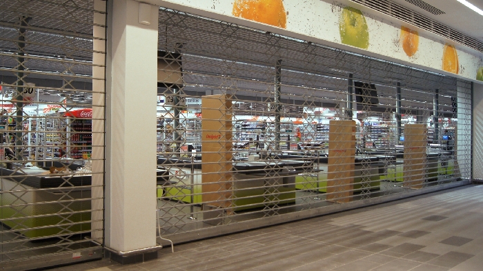 Serrande microforate P97 Traspar. Chiusure accesso Stazione Ferroviaria, Torino