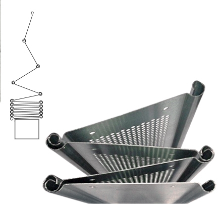 The shutter is constructed from separate modules which are assembled directly on site by setting the appropriate junction elements. TThe connection system of the different parts is achieved using slats with staggered length so that each junction point is reinforced by the insertion in the continuous articulation of the upper and lower sections.