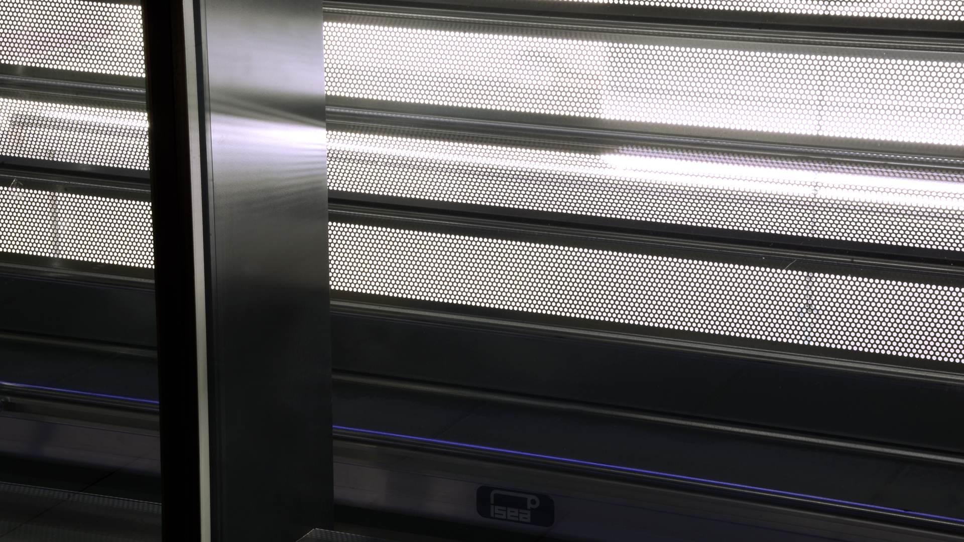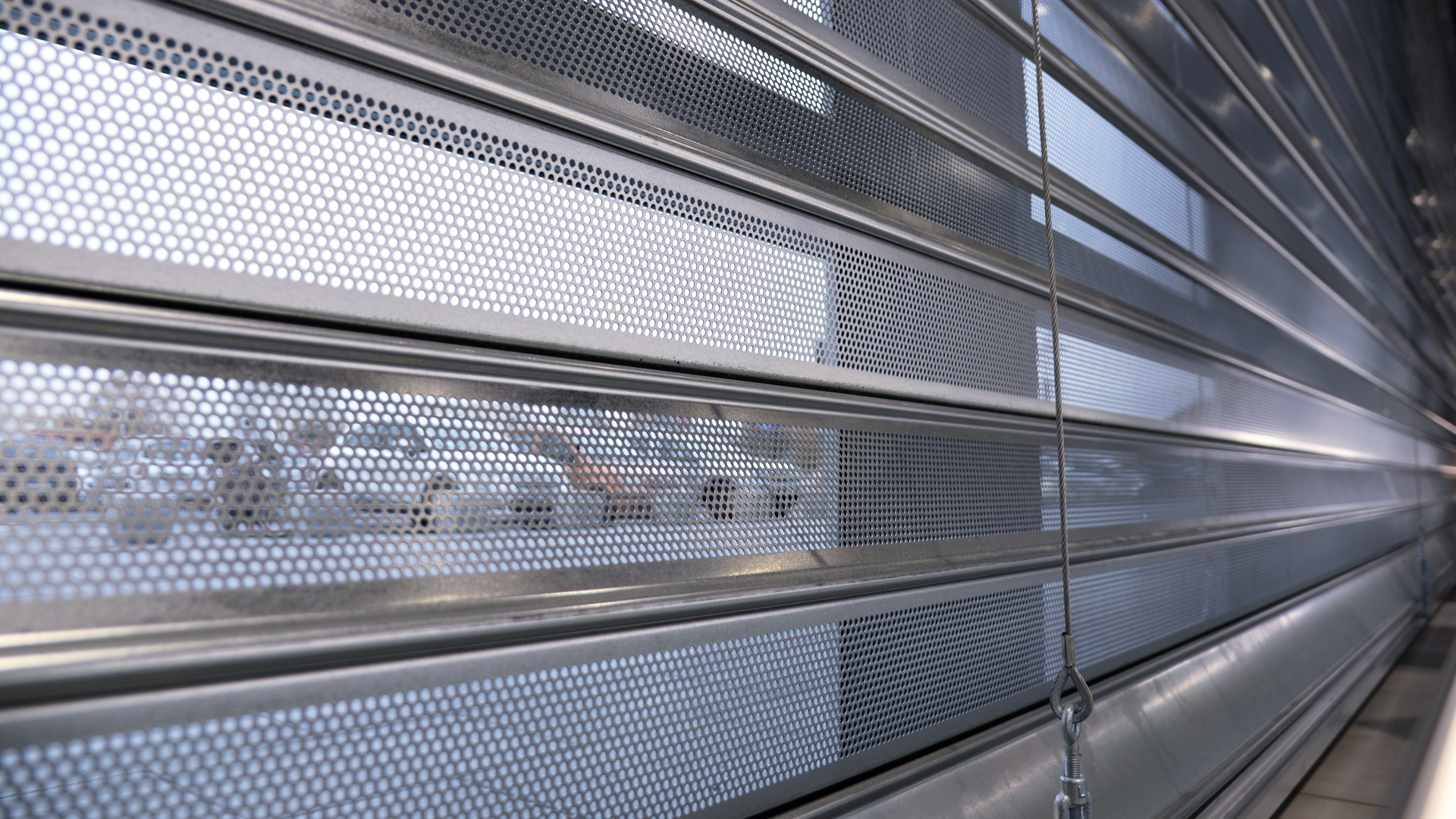 Vertical packable shutters, electrically operated, micro perforated, galv. steel